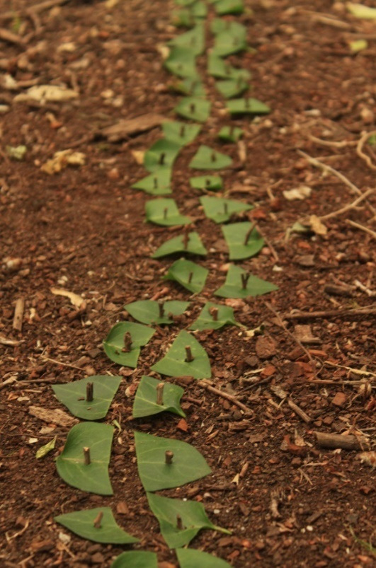 Pathway of leaves pinned with twigs