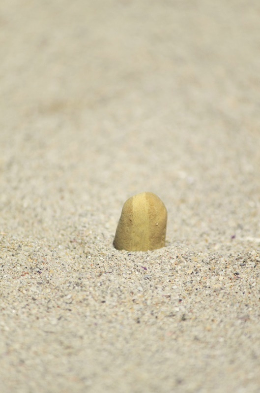 Arranging small rocks and pebbles in lines, creating patterns and lines by drawing with soft stone onto harder small rocks.