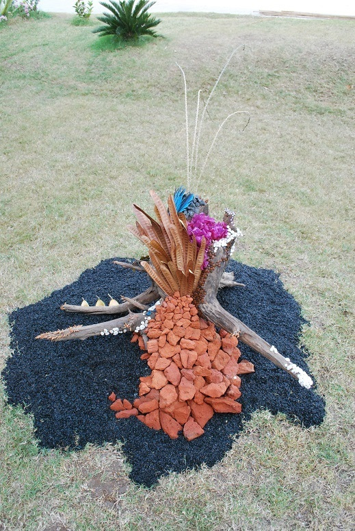 Seed, feather, stones from volcano, salt parcel, brick parcel