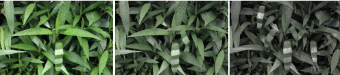풀잎이 하나씩 접힐 때 마다 사진속의 잎들은 색을 잃어가면서 어두워진다.