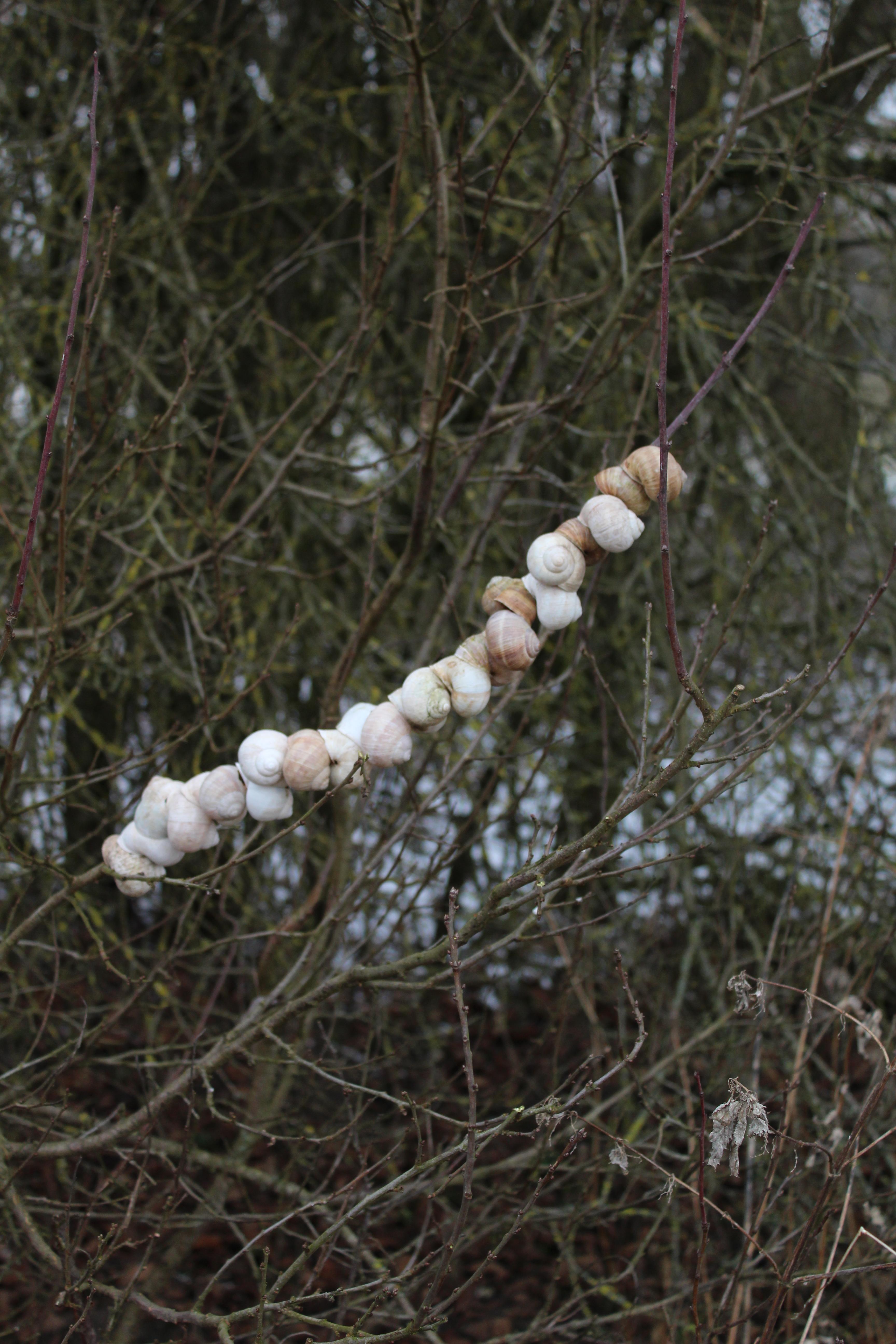 Rudi Domidian-Hundefaenger_Trailmark (24 empty snail-shells)_Winter 2025, meßkirch, Germany